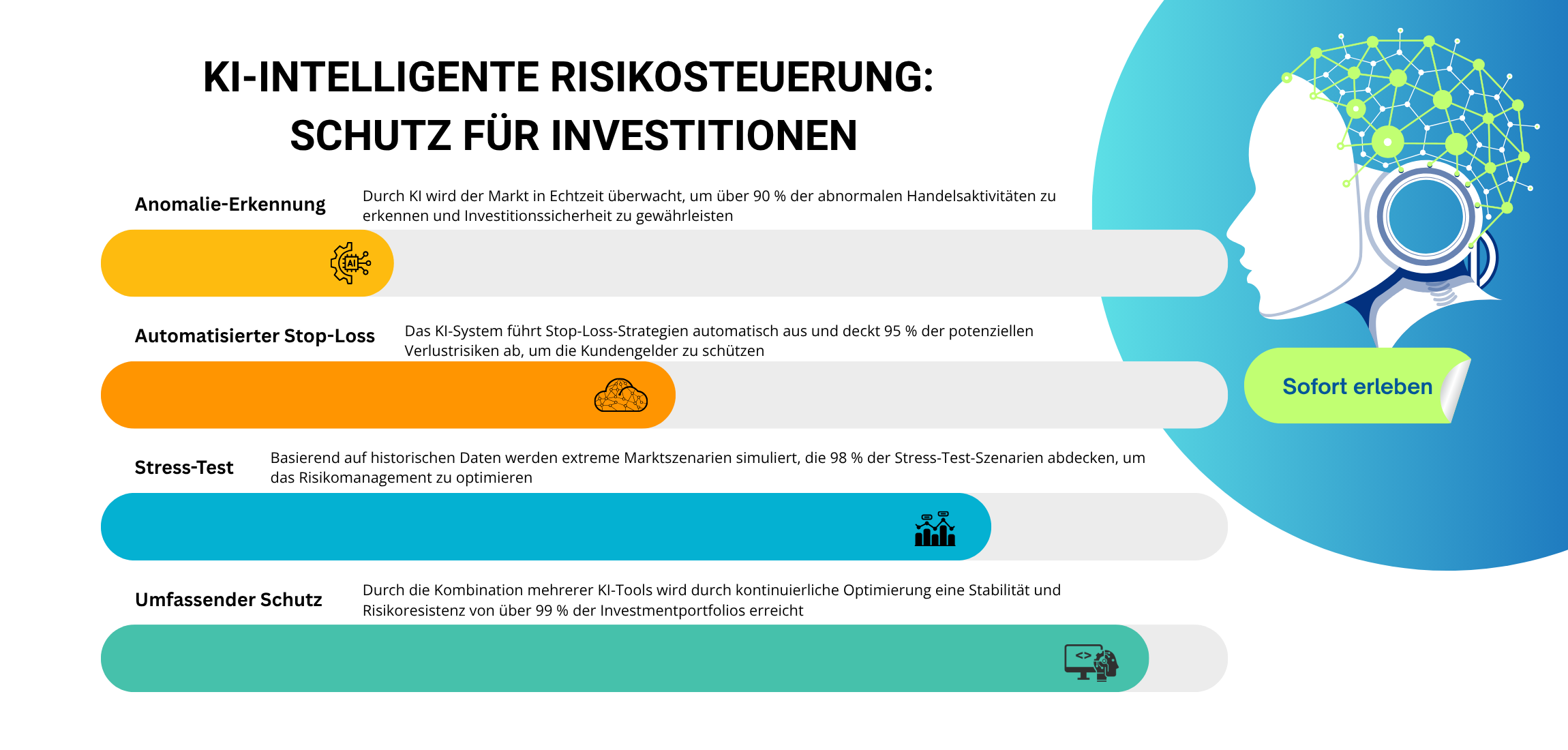 Der KI-gestützte Handel von Midland Capital bietet bedeutende Vorteile durch Deep Learning und Big-Data-Analysen. Das System verarbeitet in Echtzeit große Datenmengen, prognostiziert Trends präzise und optimiert Handelszeiten zur Ertragssteigerung. Automatisierte Risikokontrolltechnologien reduzieren menschliche Fehler und emotionale Entscheidungen. Unsere Multistrategie-Modelle decken globale Aktien-, ETF- und Optionsmärkte ab, passen sich verschiedenen Zyklen an und gewährleisten Flexibilität. Zudem ermöglicht KI individuelle Anpassungen basierend auf Risikoprofilen der Kunden. Unser Fachteam aktualisiert regelmäßig die Algorithmen, um technologische Führerschaft zu sichern und Vorteile in komplexen Märkten zu nutzen.