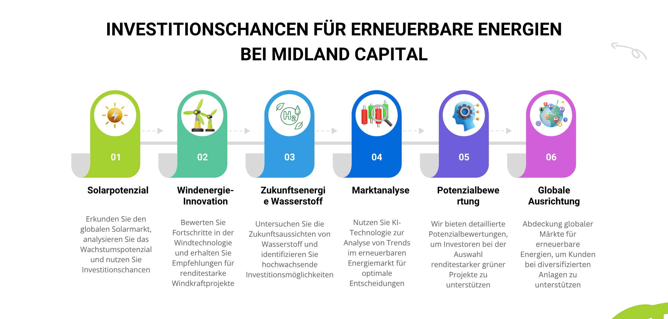 Midland Capital integriert Nachhaltigkeit in die Kernstrategie und investiert gezielt in erneuerbare Energien, Kohlenstoffhandel und ESG-Fonds. Durch KI-Analysen bewerten wir Umweltauswirkungen und optimieren unsere Investitionsportfolios, um den Ausbau von sauberen Energien zu fördern. Wir engagieren uns aktiv in Initiativen für Klimaneutralität und unterstützen Unternehmen bei der Transformation zu niedrigen CO₂-Emissionen. Zusammenarbeit mit internationalen Umweltorganisationen fördert nachhaltige Finanzprodukte wie grüne Anleihen. Unsere datengetriebenen Investitionsentscheidungen balancieren wirtschaftliche Erträge mit sozialer Verantwortung aus, um langfristige Nachhaltigkeitsziele zu erreichen.
